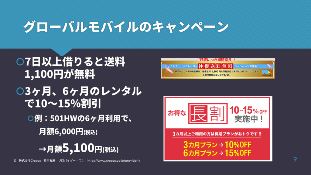 グローバルモバイルのレンタルWiFiのキャンペーン詳細