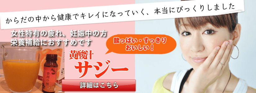 このページは黄酸汁サジーの体験レポート、特徴などを解説しています。サジーはだるさや疲れを改善・解消できる、そして女性特有の生理痛や妊娠中の栄養補給、健康維持に適した健康ジュースです。長らく人気、ベストセラーの健康ドリンク「黄酸汁サジー」について実際に飲んでみた感想、口コミ評判は本当か、おすすめできる健康に気を使っている人について解説していきます。
